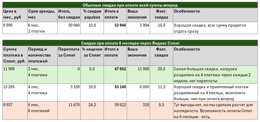 Сплит делит оплату на части — платежи можно вносить постепенно. Это не кредит и не рассрочка, поэтому у него нет анкет, проверки кредитной истории и скрытых условий. А арендованный бокс вы получите после первого платежа — то есть сразу.